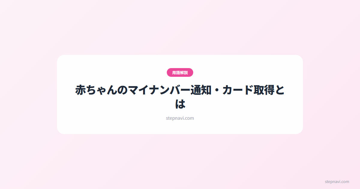 赤ちゃんのマイナンバー通知・カード取得とは、出生届の提出により住民票が作成された赤ちゃんに自動で付番されるマイナンバー(個人番号)の通知を受け取り、必要に応じてマイナンバーカードを申請する手続きです。行政手続における特定の個人を識別するための番号の利用等に関する法律(番号法)第7条に基づき、出生届の提出後に個人番号通知書が住民登録地に郵送されます。マイナンバーカード自体の取得は任意ですが、児童手当の申請や健康保険の手続きなどでマイナンバーの記載が求められるため、通知書は届いたら大切に保管してください。