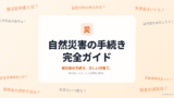 自然災害に関連するすべての手続きは「自然災害の手続き完全ガイド」で時系列順に解説しています。トラブルを避けるためのポイントは「自然災害トラブル対策」も参考にしてください。