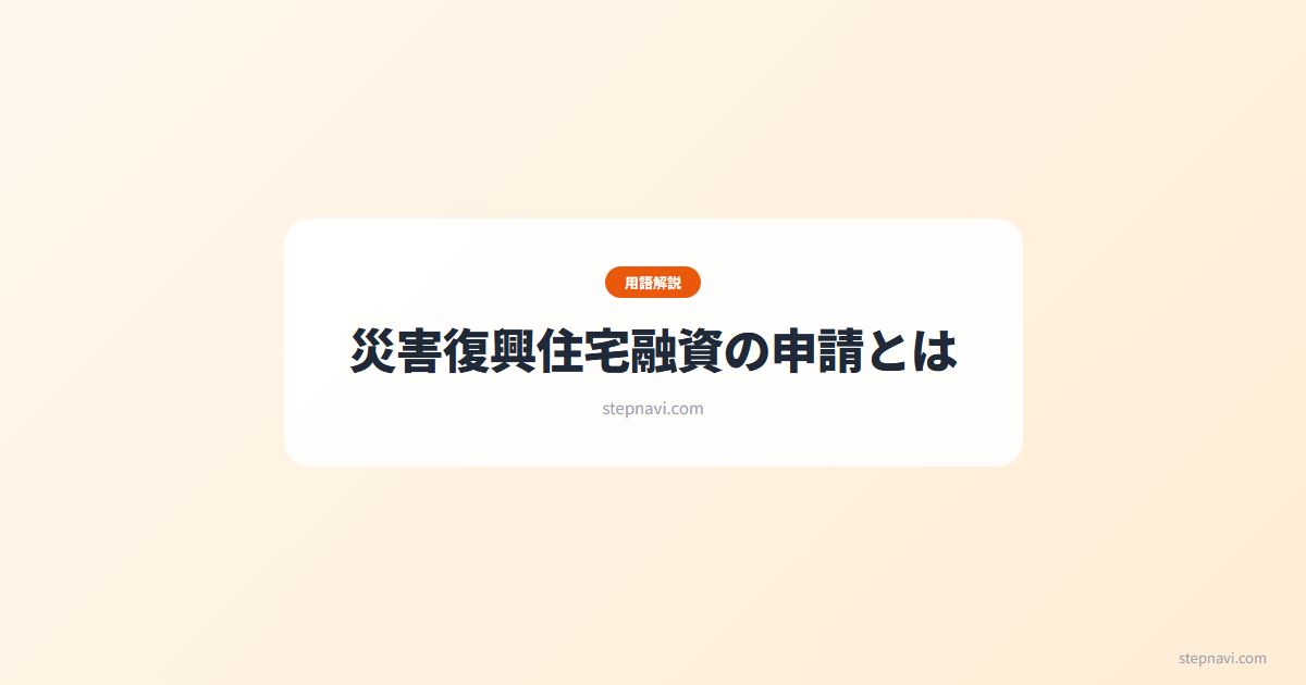 災害復興住宅融資とは、自然災害で住宅が全壊・大規模半壊・中規模半壊・半壊の被害を受けた場合に、住宅の建設・購入・補修のために住宅金融支援機構から低利の融資を受けられる制度です。金利は通常の住宅ローンより低く設定されており、返済期間は最長35年です。申込期限は原則として災害発生日から2年以内で、被災者生活再建支援金との併用が可能です。法的根拠は独立行政法人住宅金融支援機構法第13条第1項第5号です。