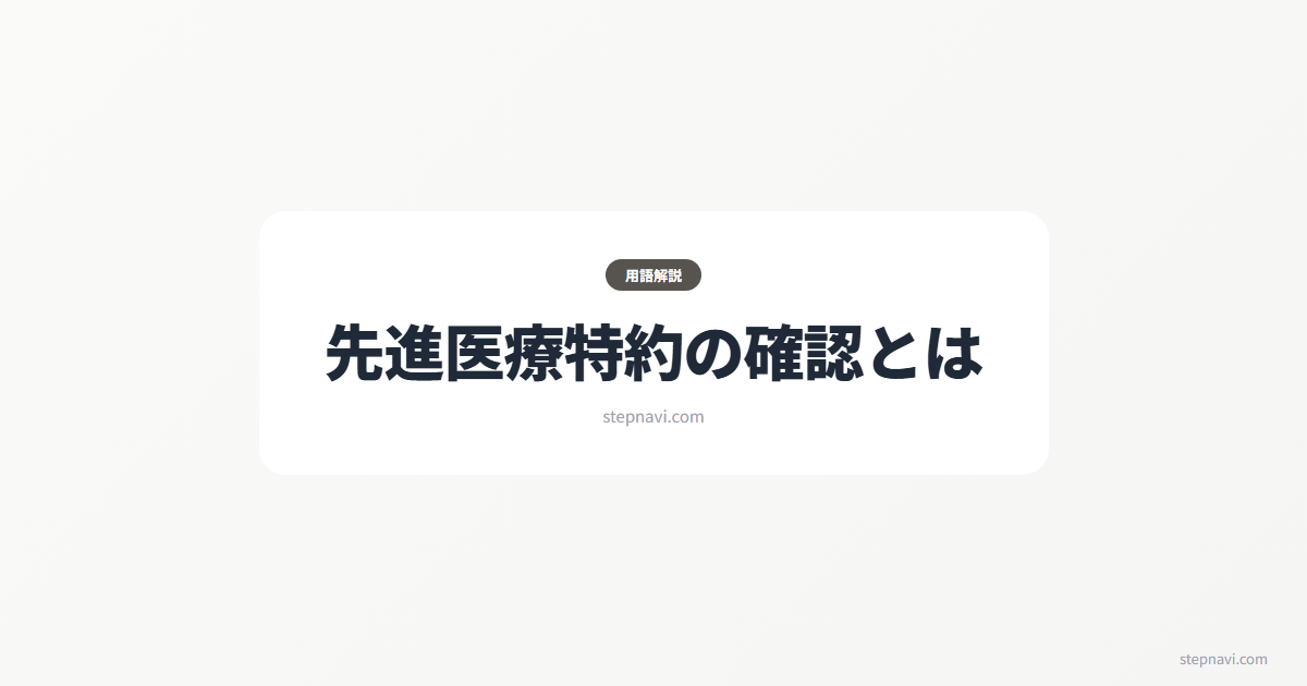 先進医療特約の確認とは、現在加入中の医療保険やがん保険に先進医療特約が付帯されているかを確認し、必要に応じて追加を検討する作業のことだ。先進医療は公的医療保険の対象外のため技術料が全額自己負担になる。陽子線治療は約271万円、重粒子線治療は約316万円。先進医療特約は月額100〜500円程度の保険料で通算2,000万円まで保障されるのが一般的だ。法的根拠は健康保険法第86条(保険外併用療養費)。