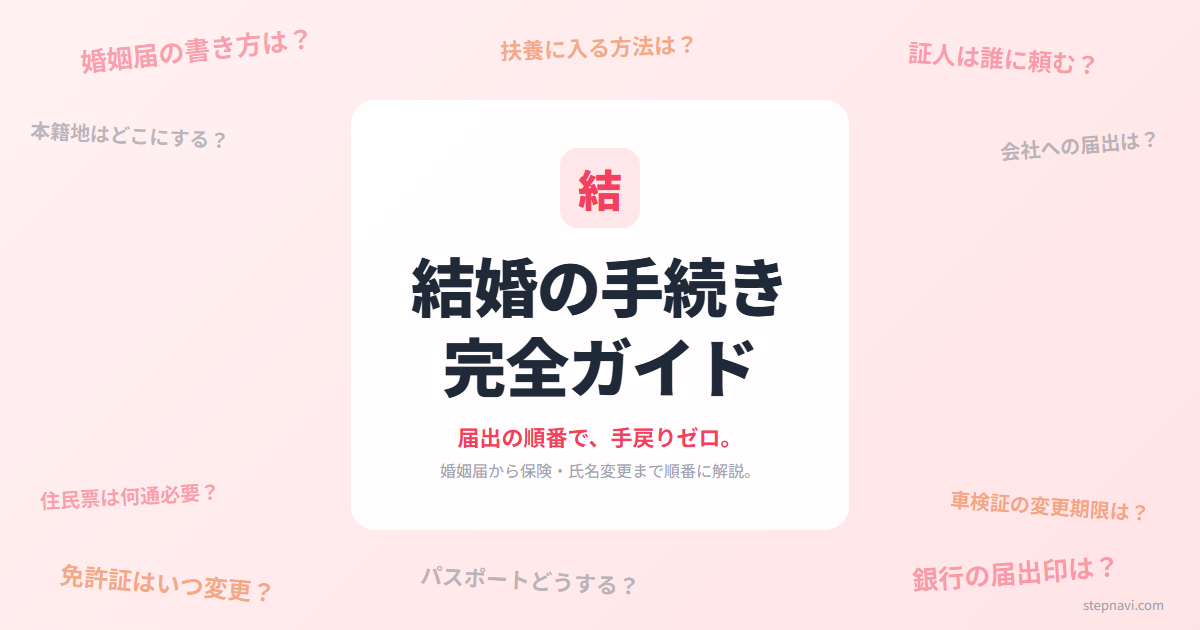 この記事では、婚姻届の提出から各種変更手続きまで、効率よく進めるための正しい順番と、見落としがちな期限のある手続きを解説します。