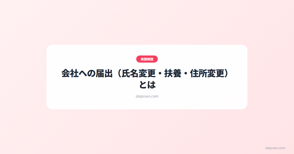会社への届出とは、結婚に伴い勤務先の人事・総務部門に必要な変更届を提出する手続きのことです。届出の内容は氏名変更・住所変更・通勤手当の変更・家族手当(扶養手当)の申請・配偶者を扶養に入れる場合の届出など多岐にわたります。会社ごとに届出の種類やタイミング、必要書類が異なるため、婚姻届を提出したら速やかに人事・総務部門に確認してください。雇用保険・厚生年金・健康保険の氏名変更は会社が代行してくれる場合が多く、自分で年金事務所やハローワークに行く必要はありません。法定期限の定めはありませんが、社内規定で届出期限が設けられていることがあります。