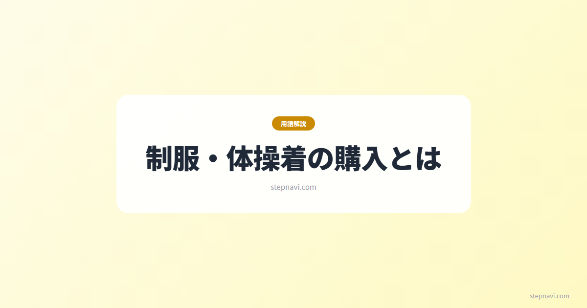 制服・体操着の購入とは、入園・入学に際して学校が指定する制服や体操着を購入する手続きのことです。入学説明会(1〜2月頃)でサイズ合わせと注文が行われるのが一般的で、成長を見越して1〜2サイズ大きめを選ぶ家庭が多いです。費用は制服3〜10万円、体操着5,000〜1万円程度で、注文から納品まで1〜3週間かかります。