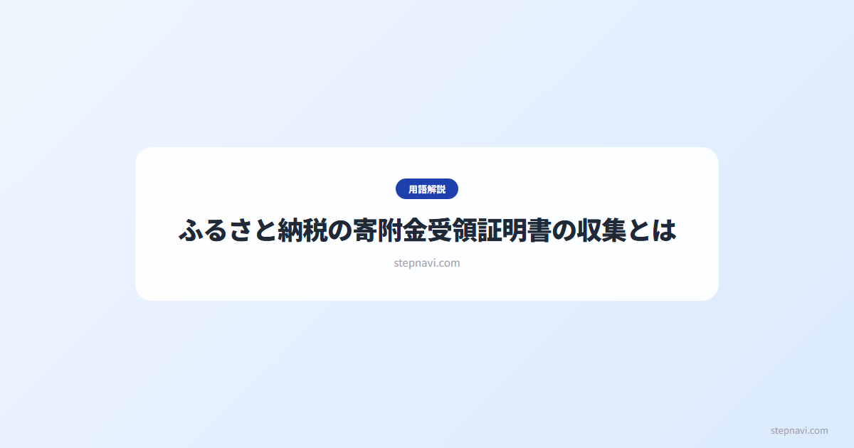 寄附先の各自治体から寄附後1〜2ヶ月で「寄附金受領証明書」が届く。複数の自治体に寄附した場合は、全ての自治体分を揃える。届いていない場合は寄附先の自治体に連絡して再発行を依頼する。ふるさと納税サイト(さとふる・ふるなび等)のマイページからも確認できる場合がある。