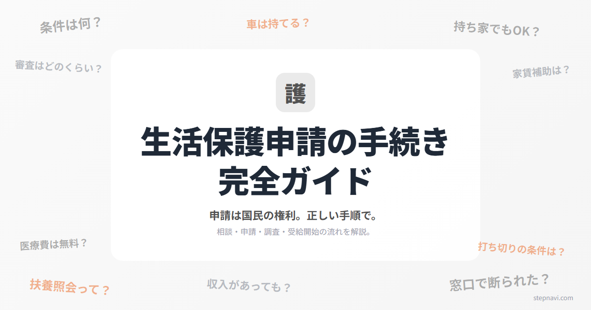 保護の要否は、収入・資産・稼働能力・扶養義務者の援助可能性を総合的に判断して決定されます。持ち家があっても、車があっても、条件次第で受給できる場合があります。