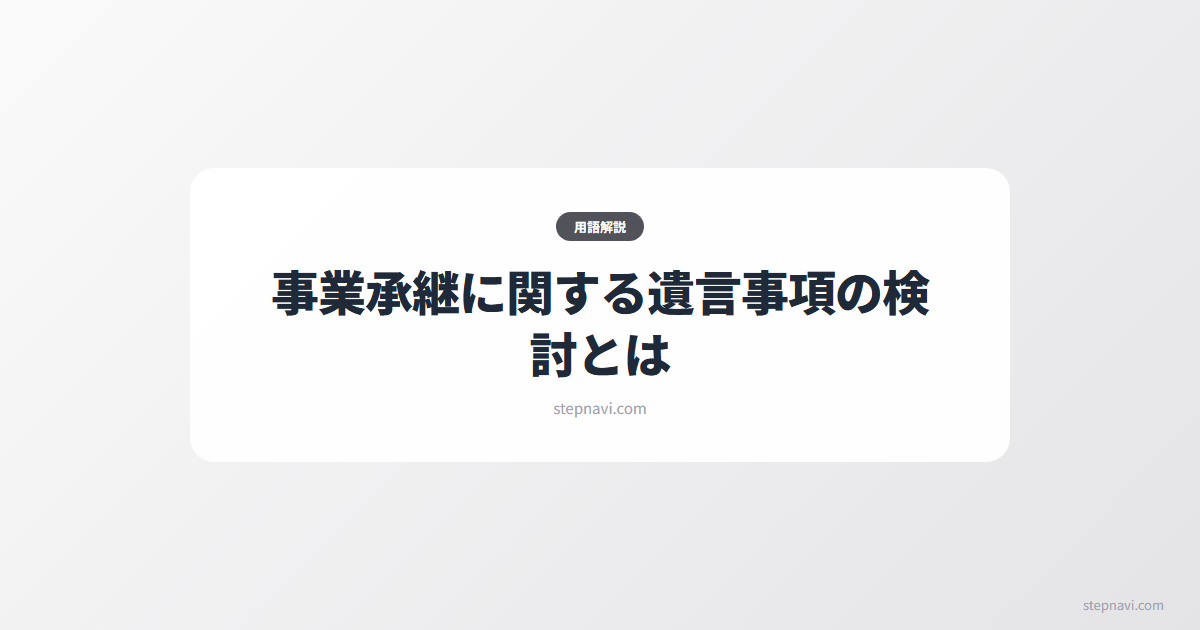 事業承継に関する遺言事項の検討とは、会社を経営している方が遺言書の中で事業の承継先を明確にするための準備です。自社株式の承継先(後継者への集中)、事業用資産(不動産・設備等)の承継先を遺言で指定することで、経営の継続性を確保できます。法的根拠は会社法第174条〜第177条(相続人等に対する株式の売渡請求)です。